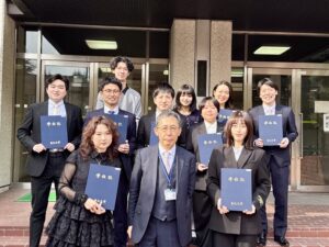 2026年3月25日、博士後期課程大学院生の佐々木健先生、三浦久子先生、呉昕澤先生、兪睿先生、澁谷綾祐先生、内藤大樹先生、博士前期課程大学院生の李響先生、芮沐良先生、周天天先生の9名が卒業しました。